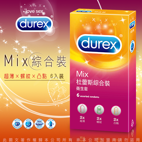 Durex杜蕾斯 綜合裝保險套-超薄x2+螺紋2+凸點x2 6片